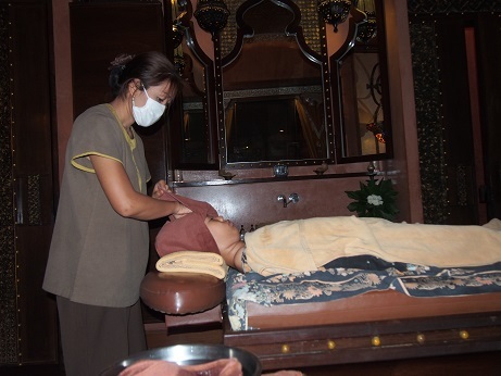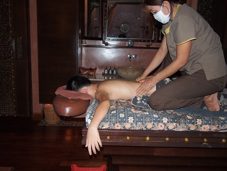 ★ケサリリーズマッサージ 体験レポート★ 額に暖かいオイルを注ぐ、アーユルヴェーダのひとつ、「KESA」を体験してきました。 用意していただいたのは、VIPルーム。ドアの外側にあるパネルで、 中の装置が全部コントロールできるという、ハイテクなお部屋でした。 パレオに着替えた後、ベッドにウツブセに寝ます。 ケサは1時間のトリートメントですが、そのうちの半分ぐらいは、軽く背中、肩、腕、手を マッサージする時間が含まれております。 実際、オイルを流す時間は、15分程度。 その後、ヘッドマッサージが15分程度という、時間配分になっています。 今回はそれほど強烈な香りでもなかったため、頭にオイルを流し始めた頃から、 気持ちよさで記憶が曖昧に・・・。 温度も熱すぎず、ちょうど良かったです。 ヘッドマッサージは、力強く、頭全体をマッサージしてくれますが、 軽くフェイシャルマッサージもしてくれます。 かなり満足度の高い1時間です。 終わったあとは、お部屋に併設のシャワールームに移動し、まずはシャンプー。 VIPのシャワールームは、大きなひまわりのようなシャワーで水の出がいい& 半屋外タイプになっている&広さも充分あるので、快適です。 シャンプー一回目は、さすがに油でドロドロなのですが、 二回目には、油分もかなり落ちます。私は、前回のトラウマで、 3回シャンプーして、最後にコンディショナーをつけて、流しましたが、 コンディショナーがとても良い香りなので、これでかなり香りが飛びます。 その日は、ごま油の香りが、かすかに残っていましたが、 翌日には、すっかり香りもなく、快適でした。 長いこと誤解していて、ごめんなさい! これからは、KESAも、自信を持ってお勧めしようと思います。 今回は、サウナ&ジャグジーではなく、同様な効果がある、 VICHY SHOWERとKESAを組み合わせたのですが、どちらも満足度が高く、お勧めです。 KESA RELEASE MASSAGE 1時間は、 パッケージの中にも、多数含まれているものがありますので、 お好みのパッケージをさがしてみてください。 |